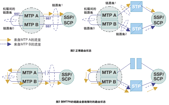 當連接到MTP A或連接到 MTP B的所有鏈路均發(fā)生故障時,訊息通過MTP A和MTP