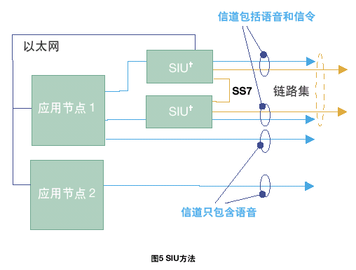 也可以采用物理上隔離應用媒介/電路處理和SS7協(xié)議狀態(tài)信息,使兩個應用程序可以利用兩個SS7接口進行通信(SIU采用這種方法)。物理隔離可以采用RSI和以太網(wǎng)來實現(xiàn)。