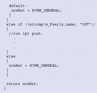 。。當系統(tǒng)檢測到一個外圍設(shè)備板卡時,建議您在該設(shè)備上執(zhí)行POST以保證硬件功能良好。系統(tǒng)版提供了POST工具,可以基于硬件類型和它屬于的產(chǎn)品系列被單獨執(zhí)行。圖6例證了這個功能是如何完成的。代碼snippet是系統(tǒng)版應(yīng)用實例pfmanager的一部分。