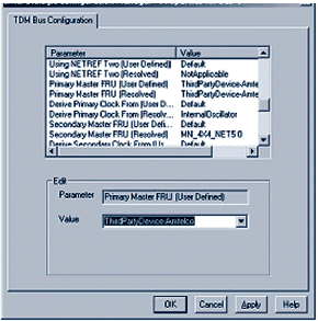 現(xiàn)在需要選擇合適的TDM總線的功能,對合適的類型(對于PCI,選擇H.100,對于CompactPCI,選擇H.110),您需要選擇主選項和客戶端選項。如果該設(shè)備將要為CT總線(客戶端服務(wù)器)提供主時鐘,選中TDM總線主控制選項,然后單擊下一步。圖5顯示的是CompactPCI服務(wù)器在系統(tǒng)中配置為客戶端服務(wù)器的選擇。