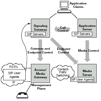 許多語音服務(wù)都是由媒體服務(wù)器提供的。例如,一個客戶給某個電子商務(wù)網(wǎng)站打電話會被接到一個自動語音應答(IVR)上或者自動總機上。這些應用使用了語音,語音識別和音頻等功能,都是運行在媒體服務(wù)器上的。在下一代網(wǎng)絡(luò)的實現(xiàn)中,媒體服務(wù)器就象是另一個電話(或者說,一個SIP的終端)。因此,他們可以享受和用戶一樣的SIP的優(yōu)點。