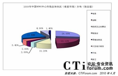 | | 圖1.9 2009年中國呼叫中心市場總體狀況(垂直市場)分布(按總值) |